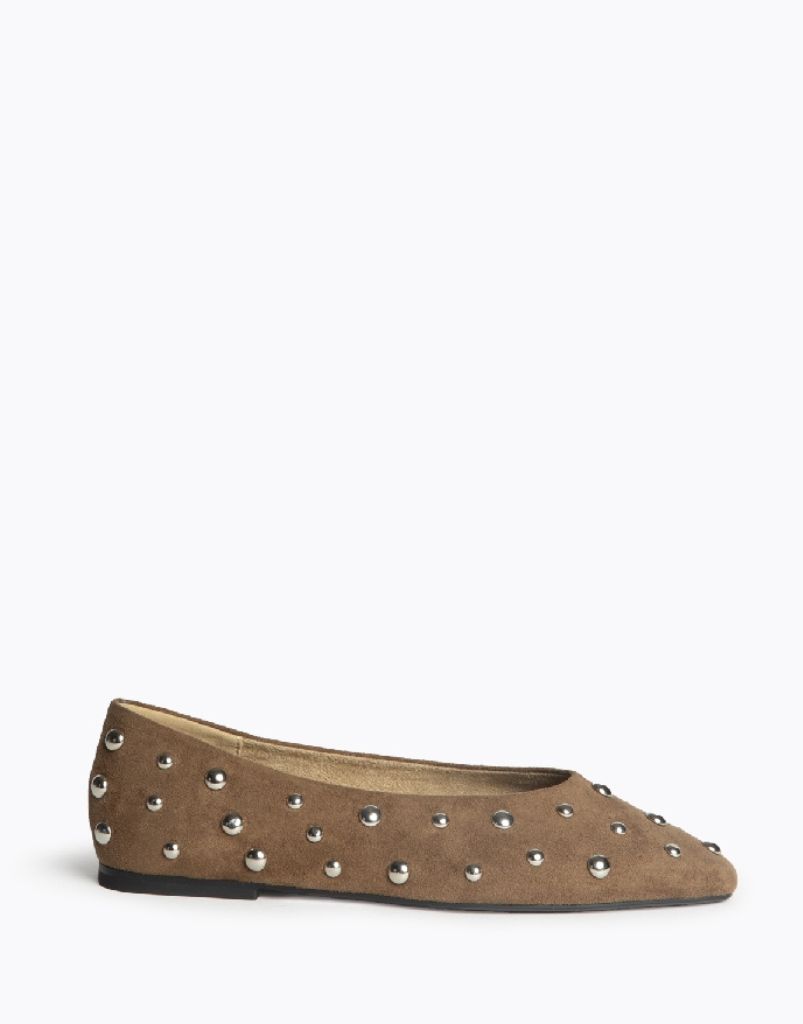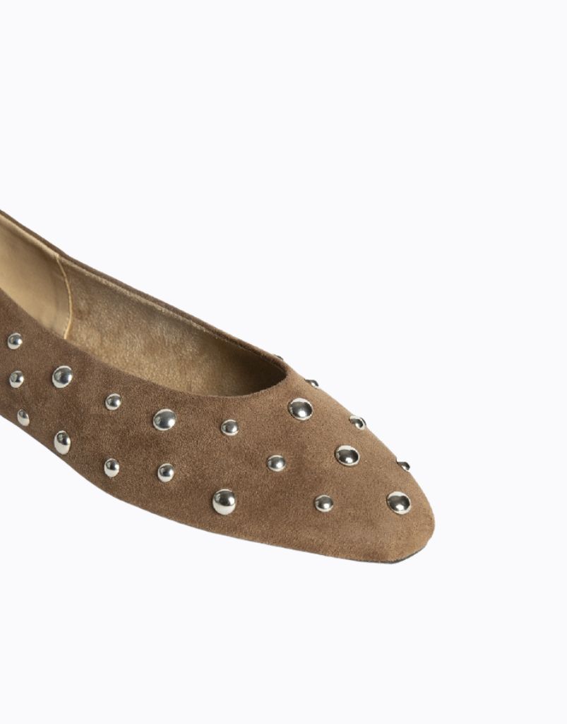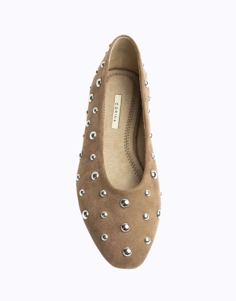 Bailarina plana de la marca Corina, con tachuelas redondeadas y suela de 1 cm,diseñado en España.
