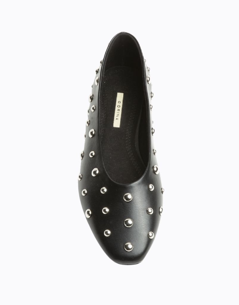 Bailarina plana de la marca Corina, con tachuelas redondeadas y suela de 1 cm,diseñado en España.