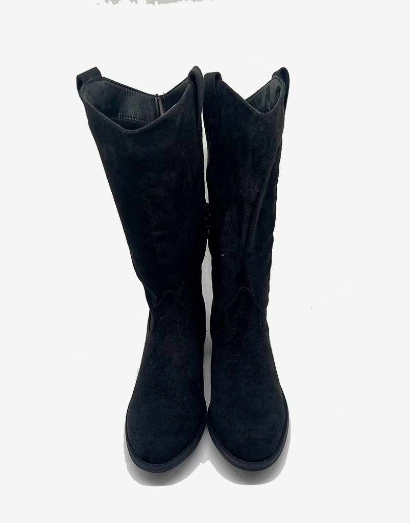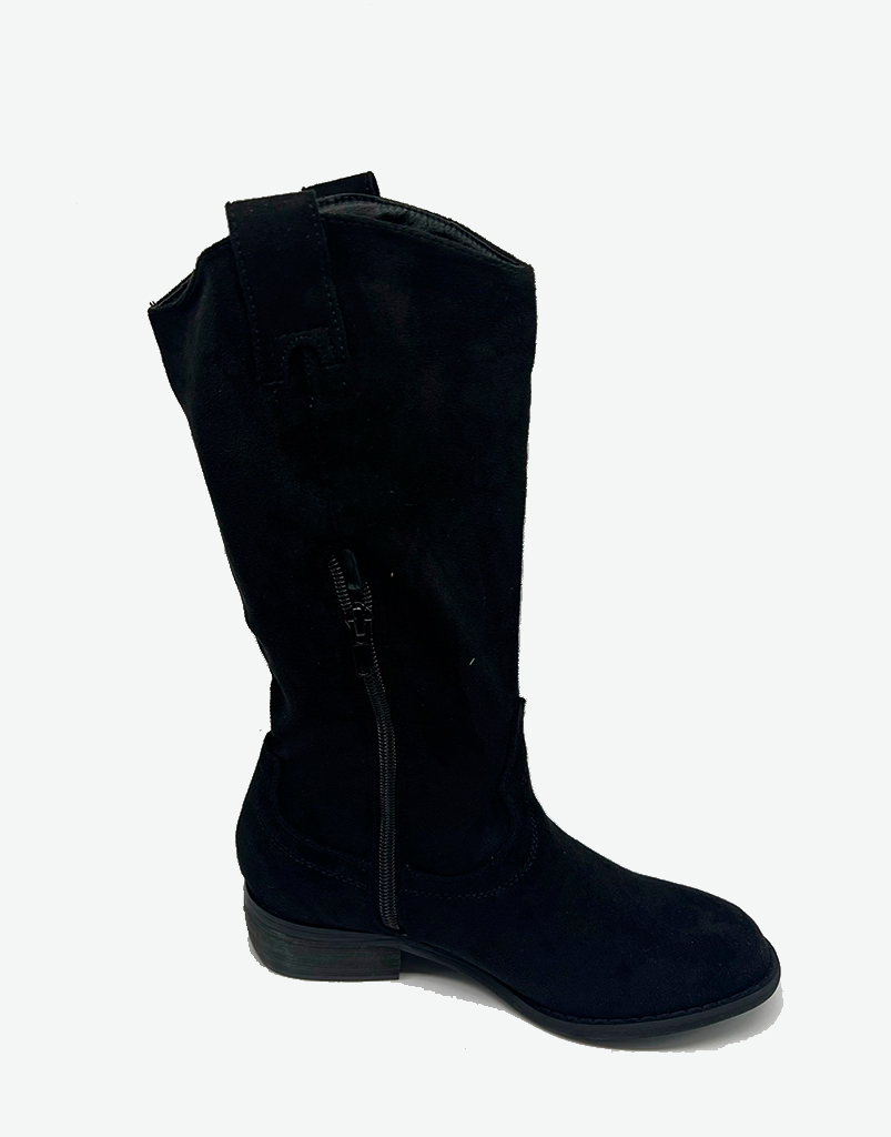 - Bota alta campera de ante negra