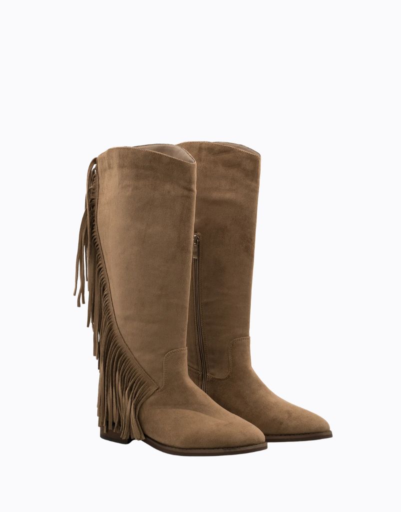 Bota alta de antelina con flecos de la marca Buonarotti con cremallera lateral, altura del tacon 2,5 cm