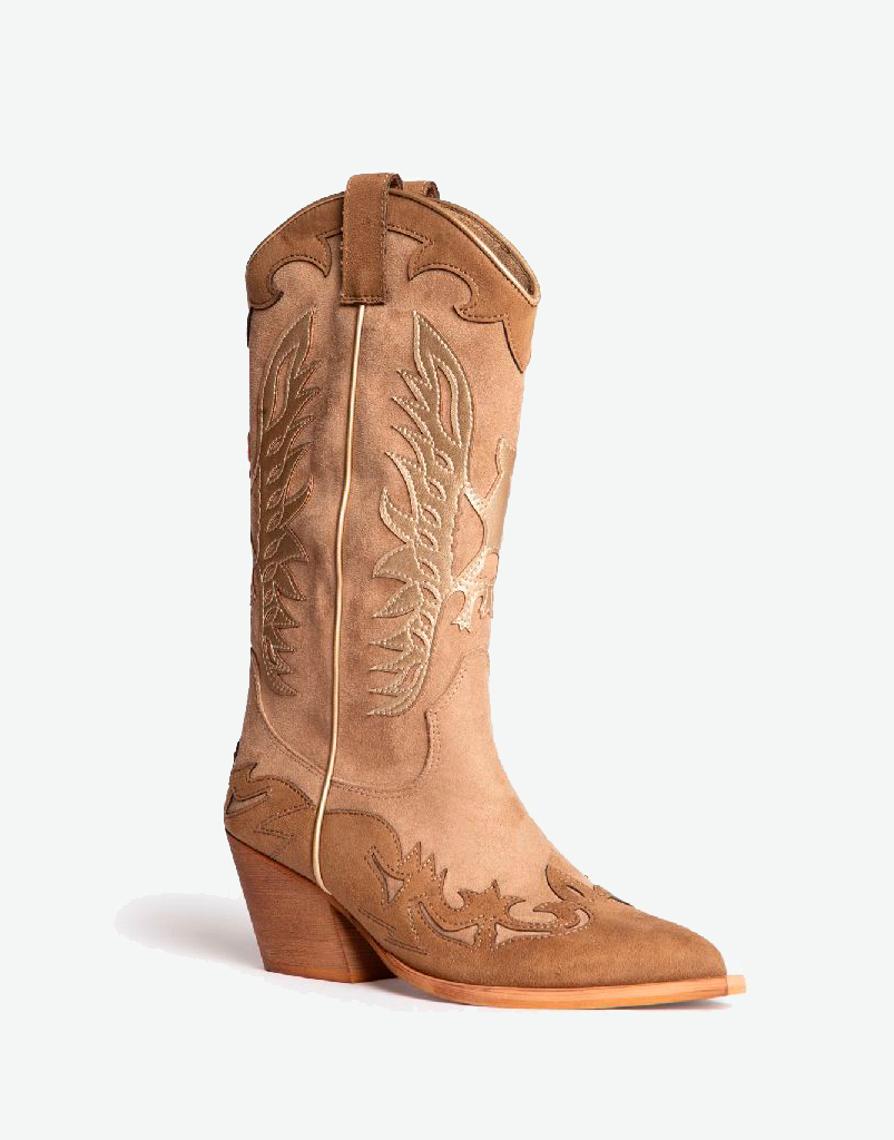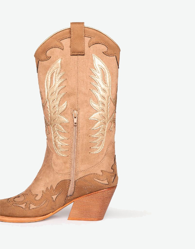 Bota Corina CAMPERA Bordada Beig-Metalizado