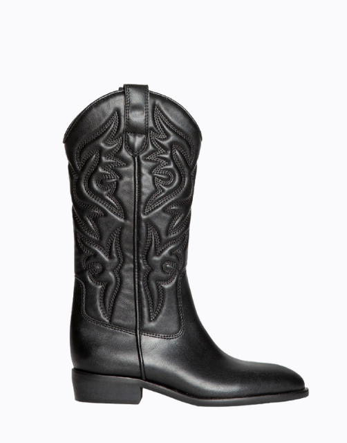 Bota cowboy Corina de polipiel con detalles bordados y tacón bajo ancho de 5 cm,diseñado en España
