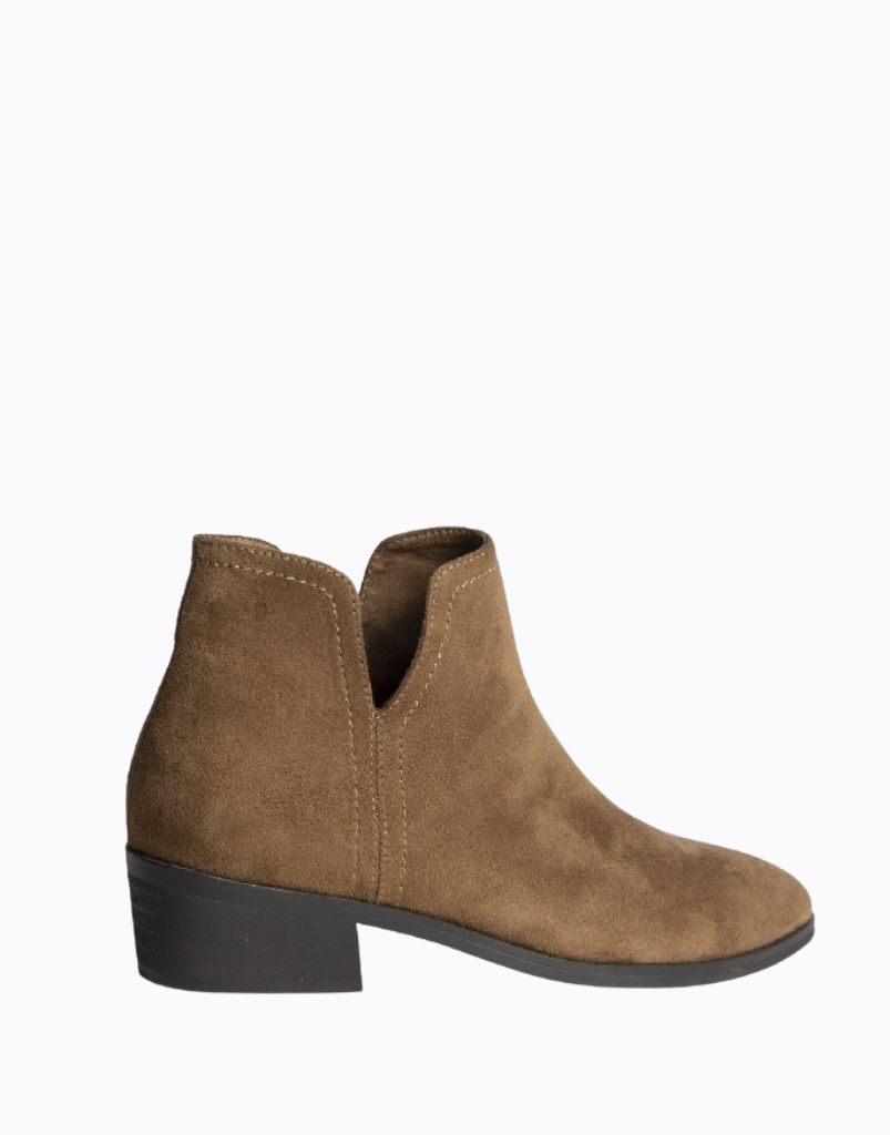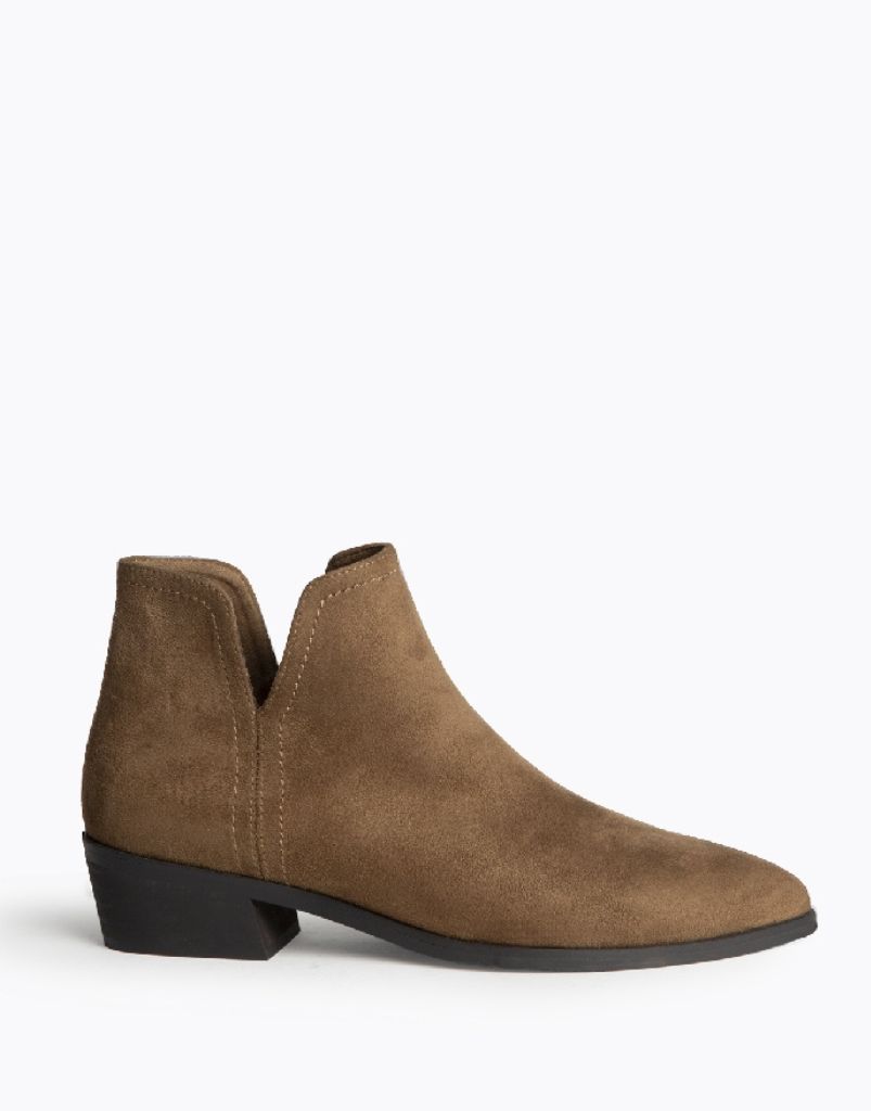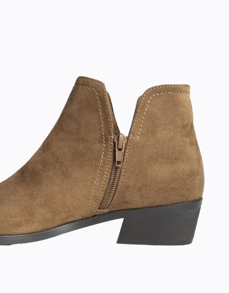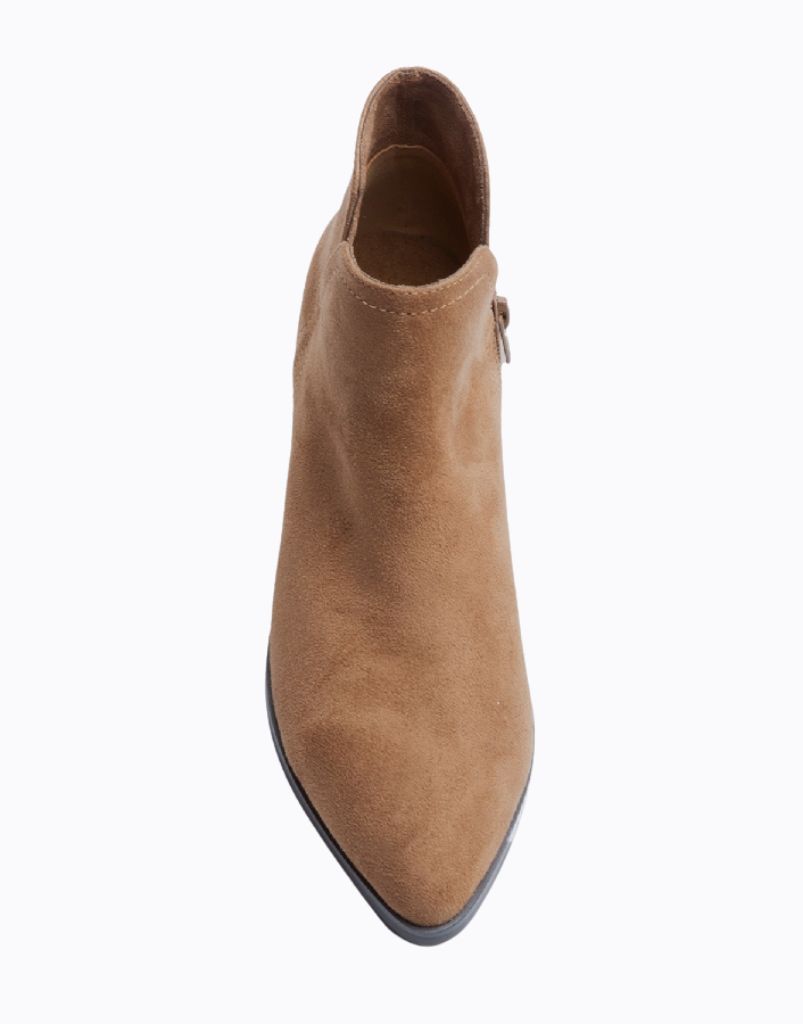Botin de tacon bajo de la marca Corina de antelina,diseño sencillo y elegante con acabado en punta y cremallera lateral, altura del tacon 4 cm, diseñado en España.