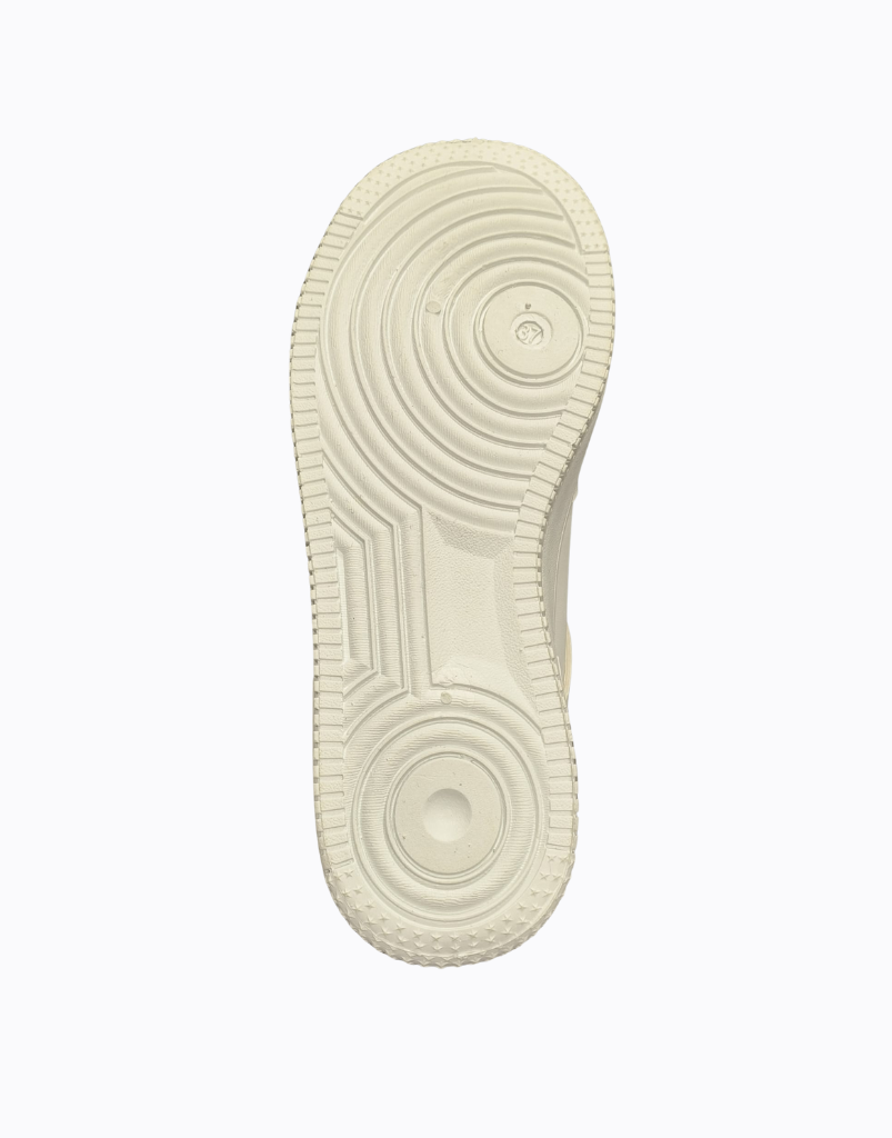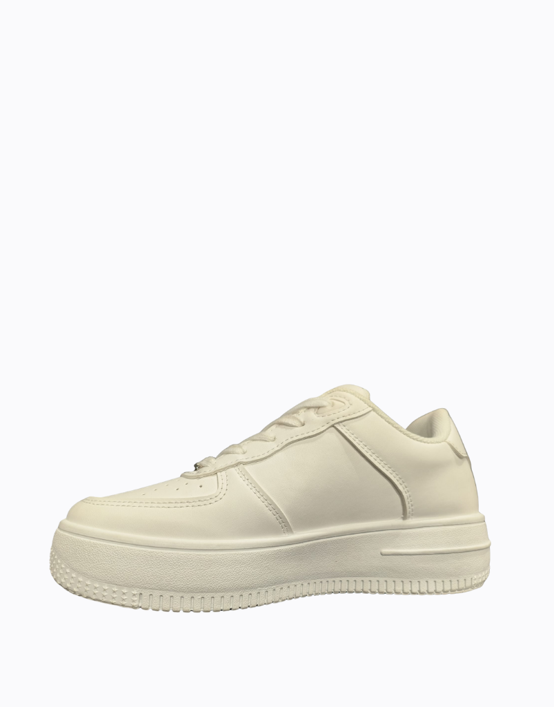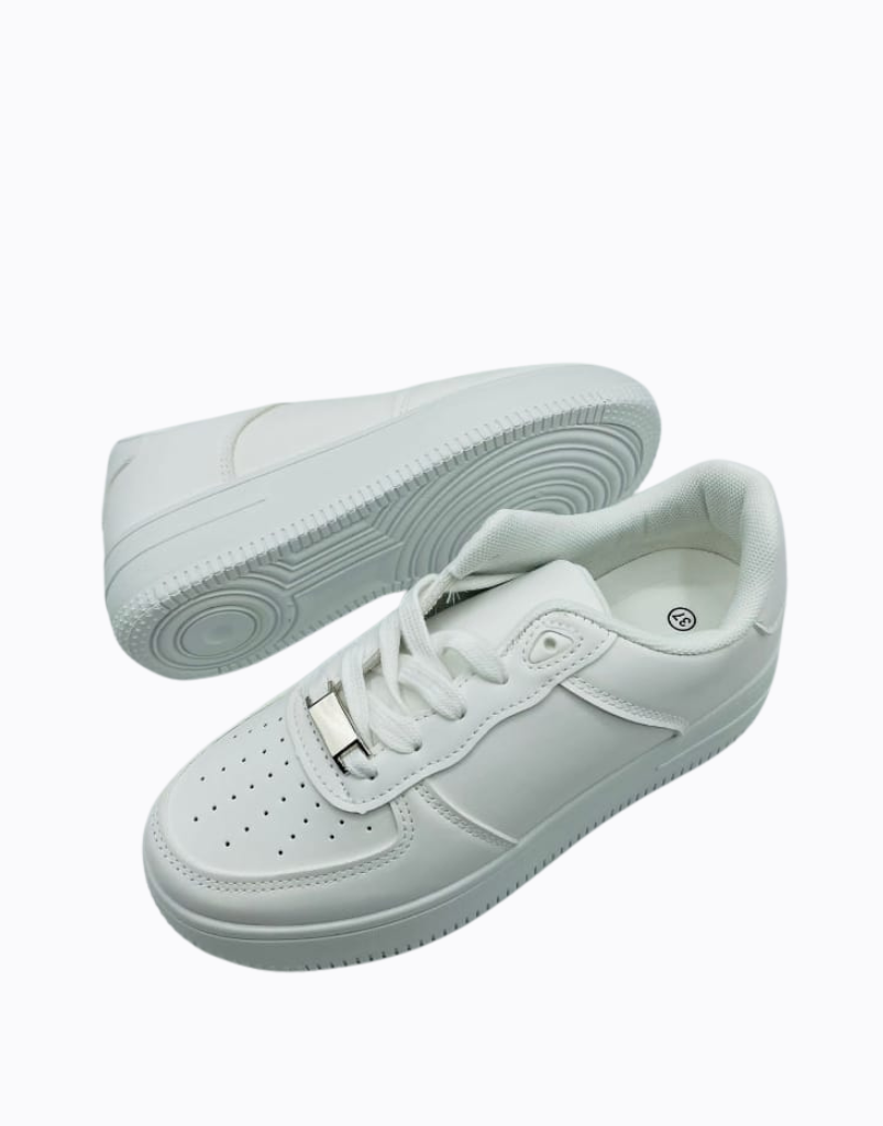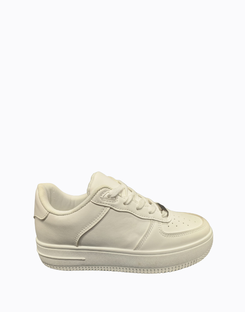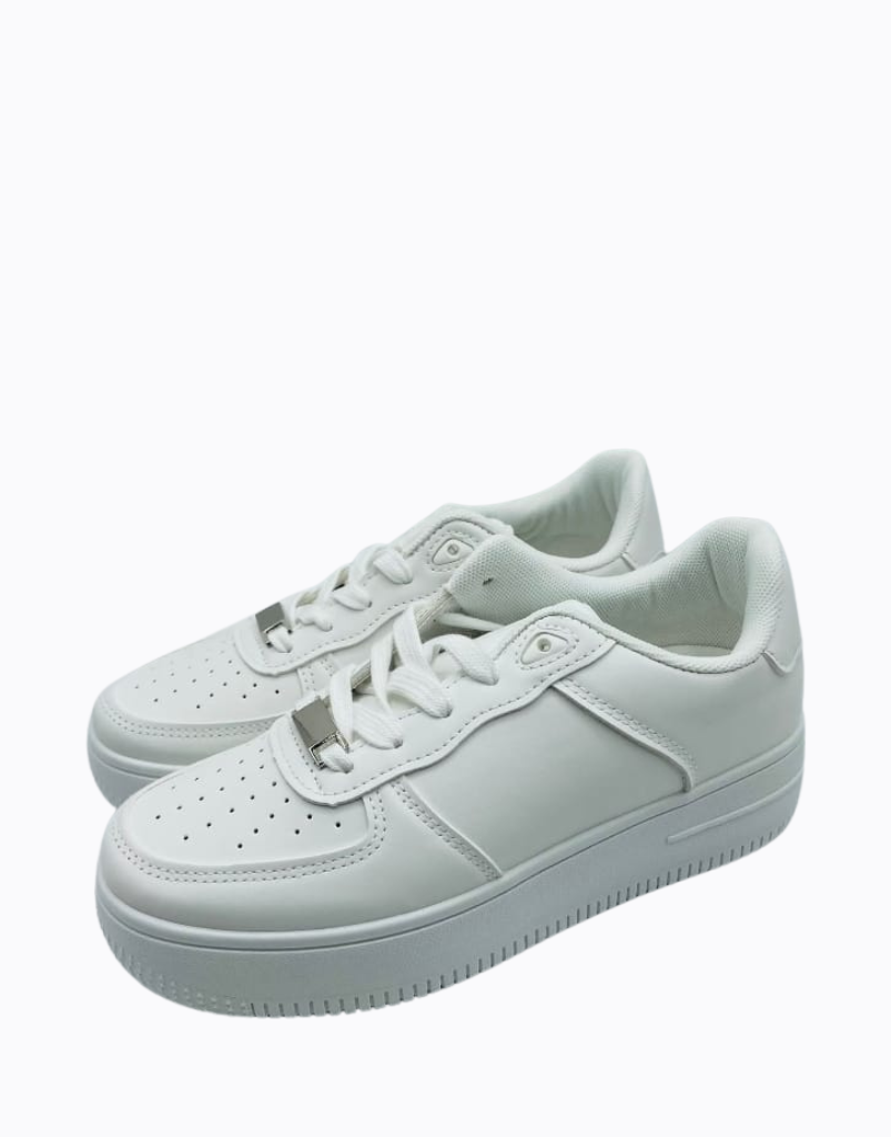 Zapatilla deportiva blanca con suela goma de 3,5 cm.con detalle chapa plateada en los cordondes.