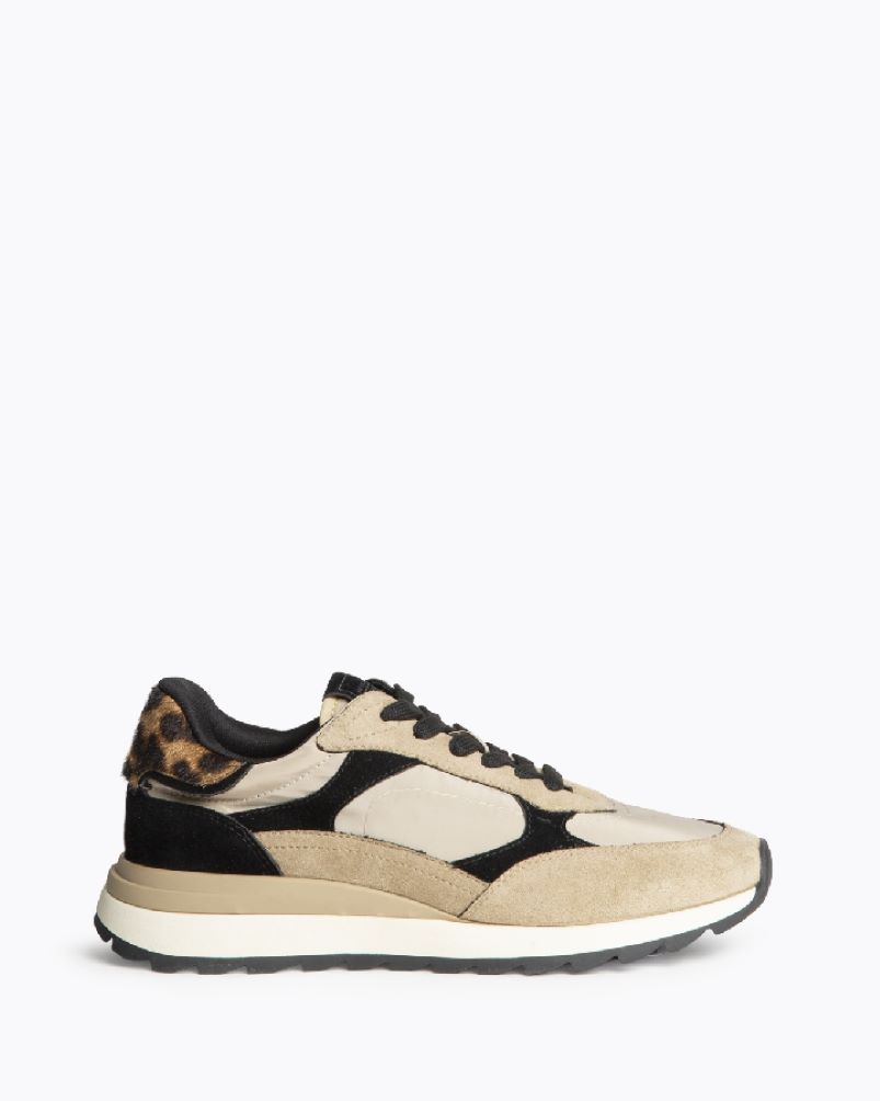 Zapatilla estilo sneakers de la marca Corina, combinacion de diferentes materiales, con suela dentada de 3 cm,diseñado en España.