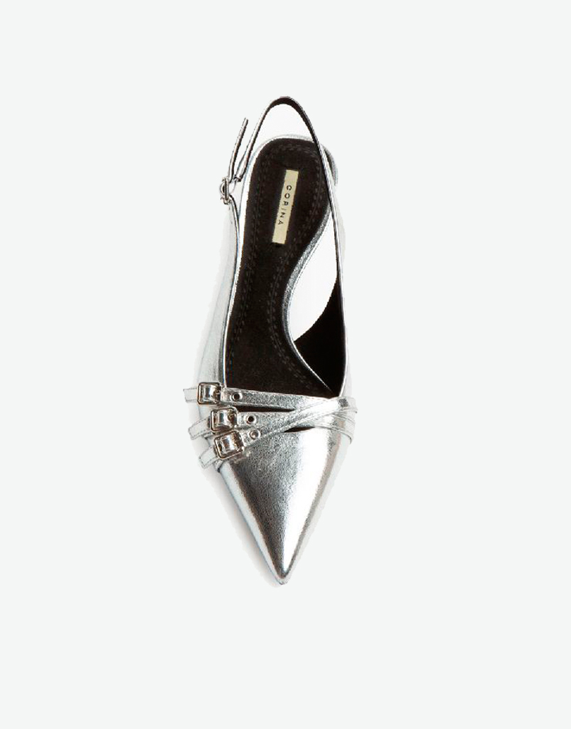 Zapato Tacón Destalonado Ebillas Corina Plata